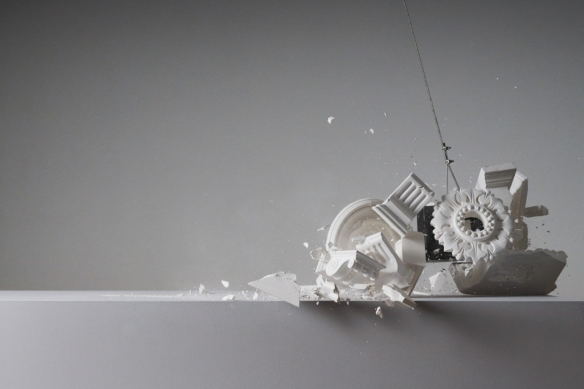 The film is a set of exactly repeated actions, but each time using different objects. It uses the structure of the fugue to create the films narrative, playing on the fugues characteristic of stating the subject in different voices.