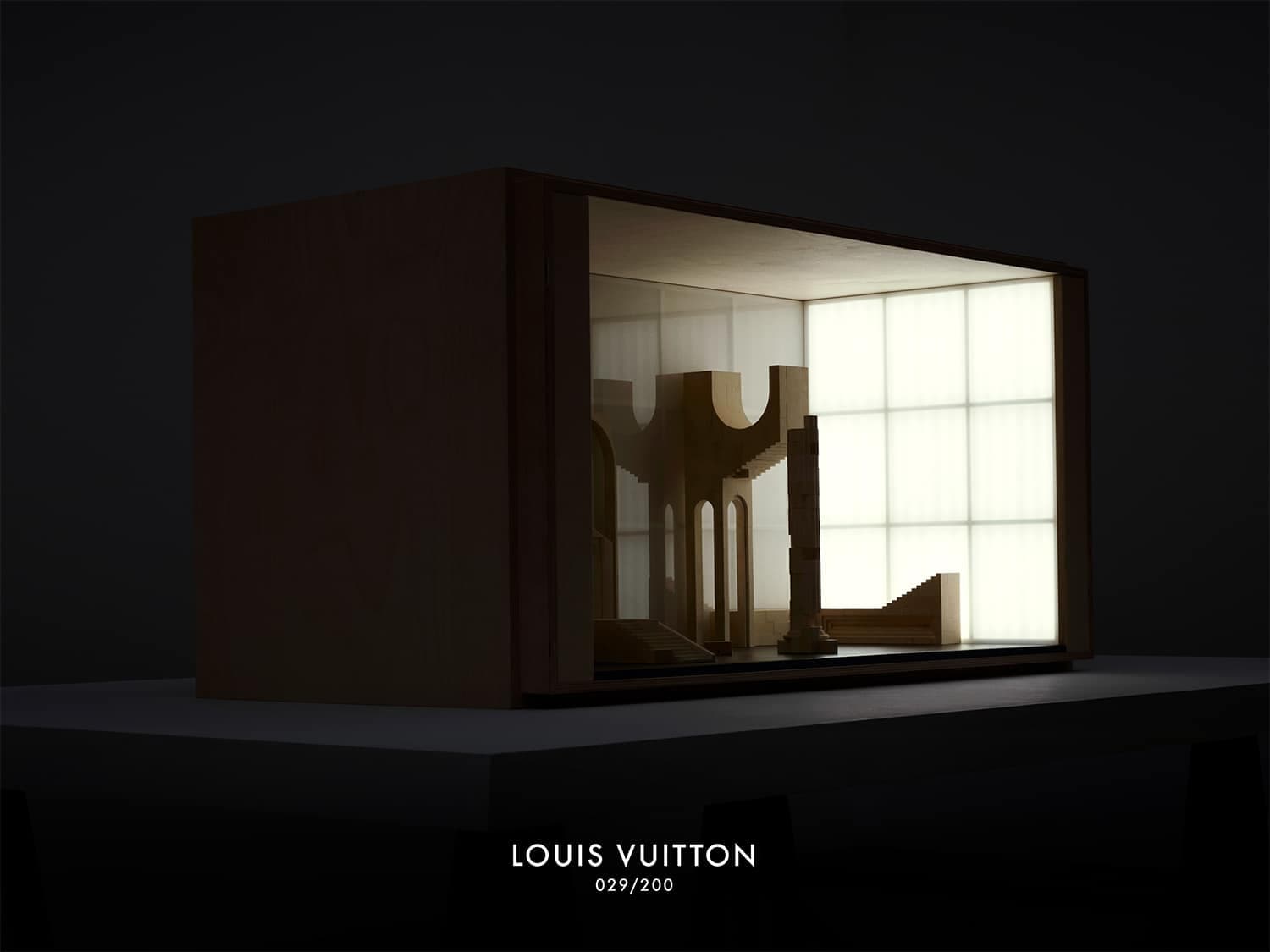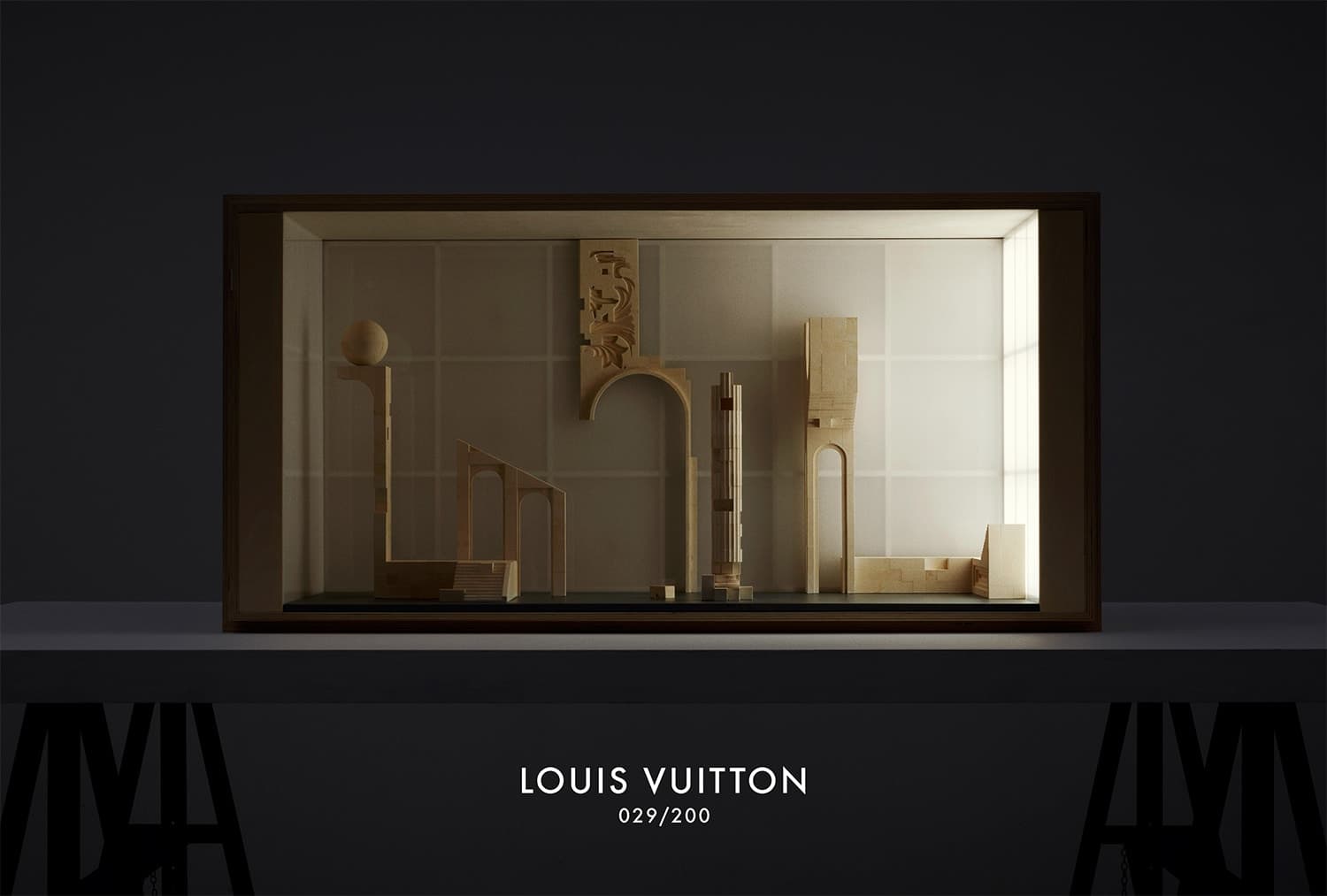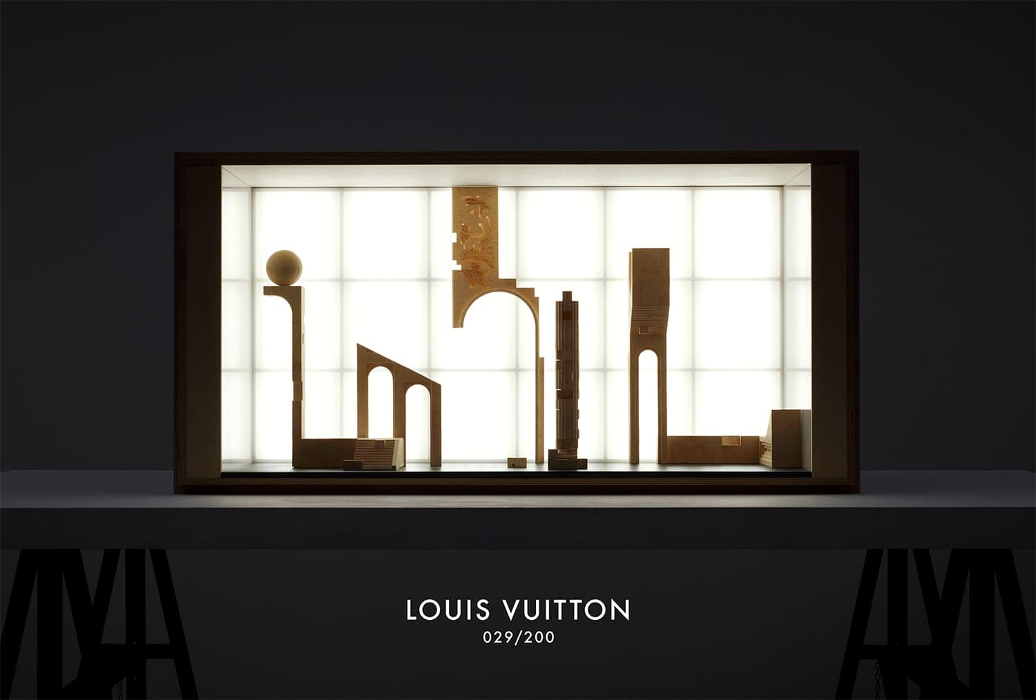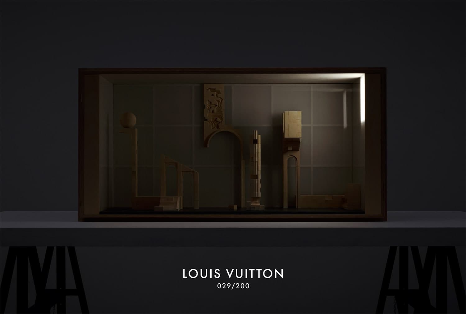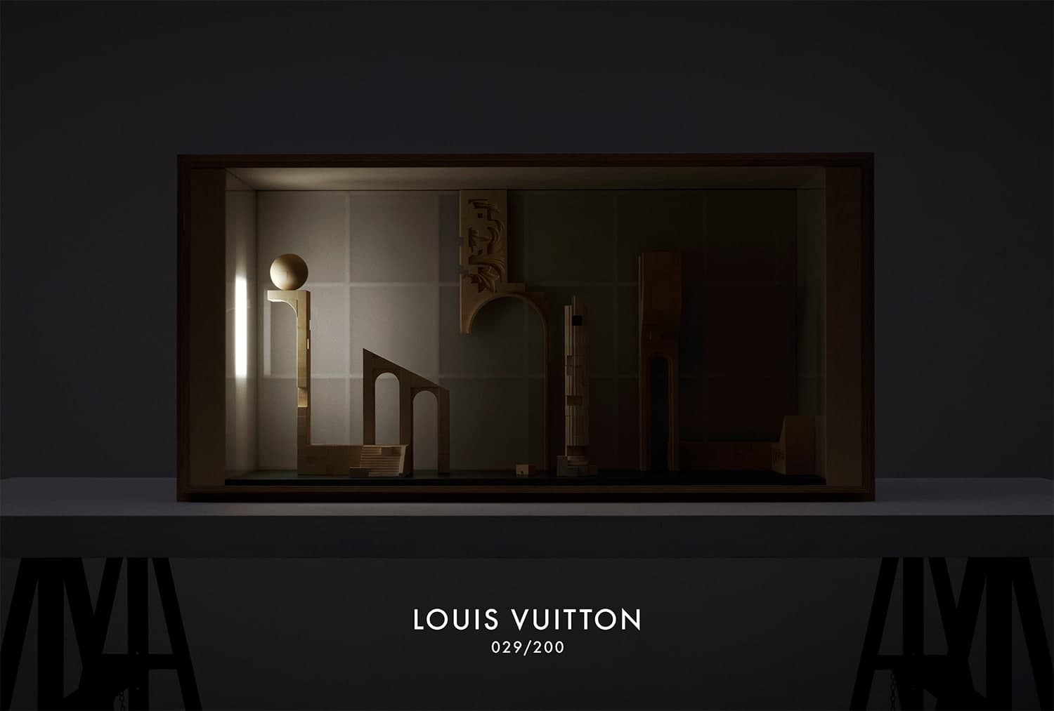 The LV trunk is used here as an architectural element, forming an exhibition space but also as a brick, a structural element used to create something bigger.