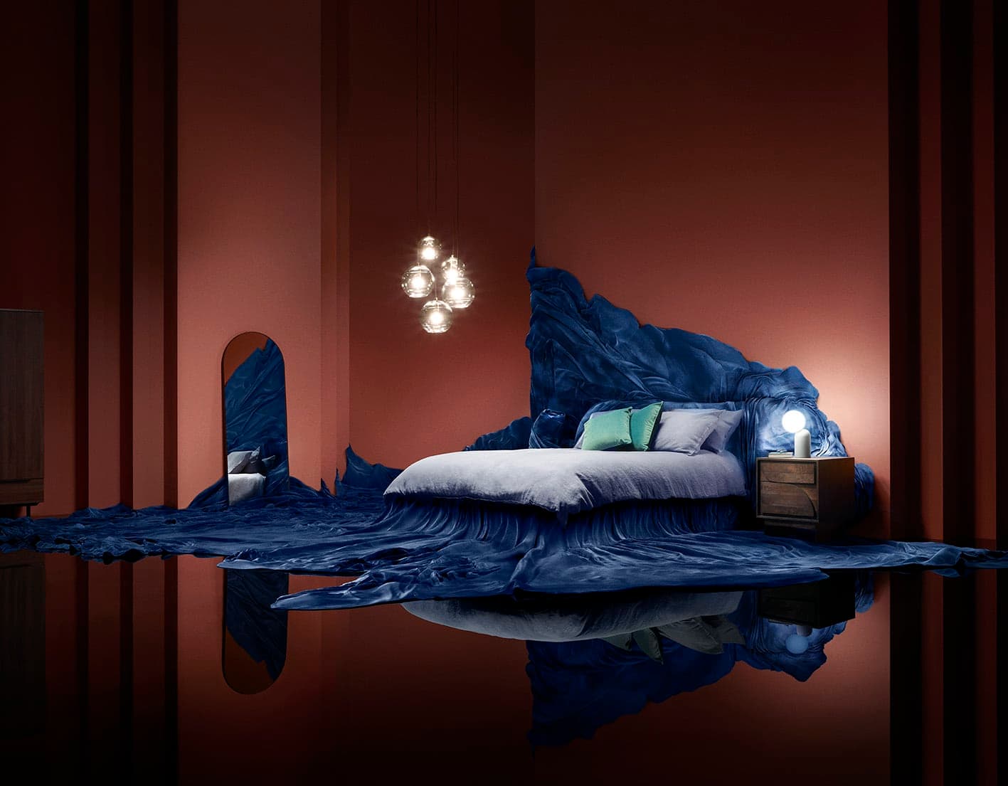 For this film we designed a series of bold and distinctive sets taking inspiration from modern showrooms and Memphis design as well as more traditional Victorian homes. The narrative starts in the entrance hall and corridor, designed to be believable spaces that act as a bridge to the magical worlds we will encounter. Within each room we discover a completely new world where the laws of physics do not apply. A Neverland of the Never Ordinary!