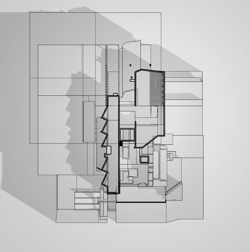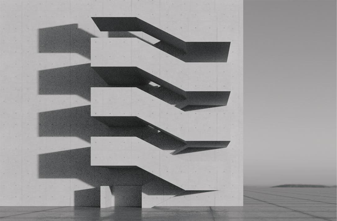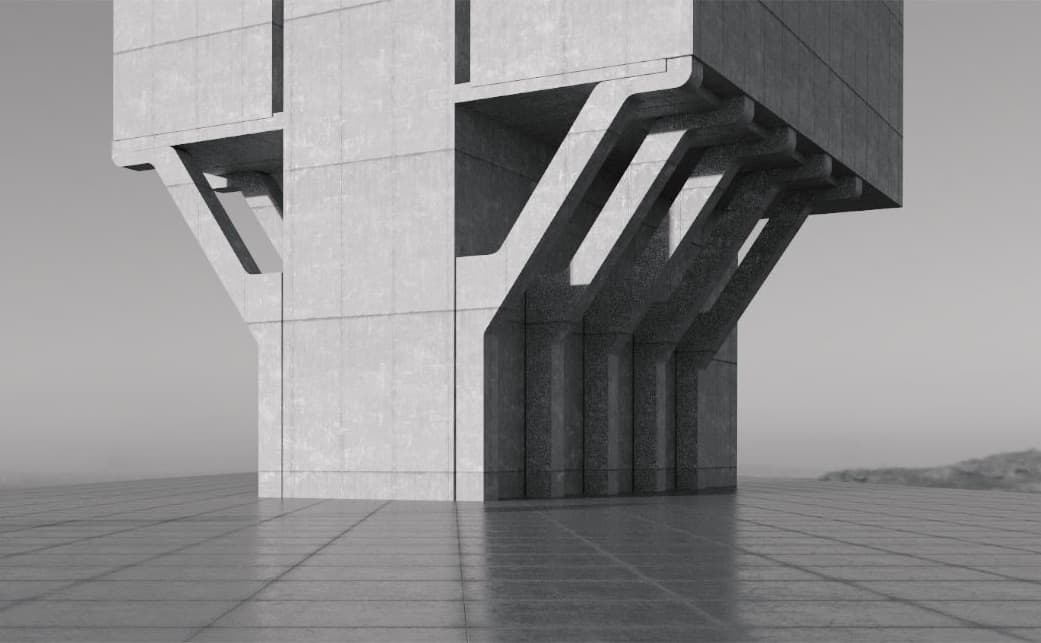 Inspired by architectural perspective illustrations first developed in the renaissance period and still used in the present day. The film adds the dimension time being compressed as we travel through the scene. The building was designed in collaboration with an architect to create a functional structure and incorporating the letter form of the ‘U’ in the final frame.