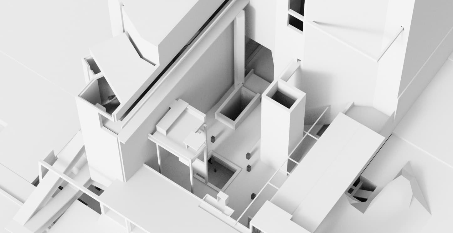The project was created in Houdini using a procedural approach to be able to globally control the timing, animation and lighting. This approach saved time as the geometry of the building kept changing regularly through the project.